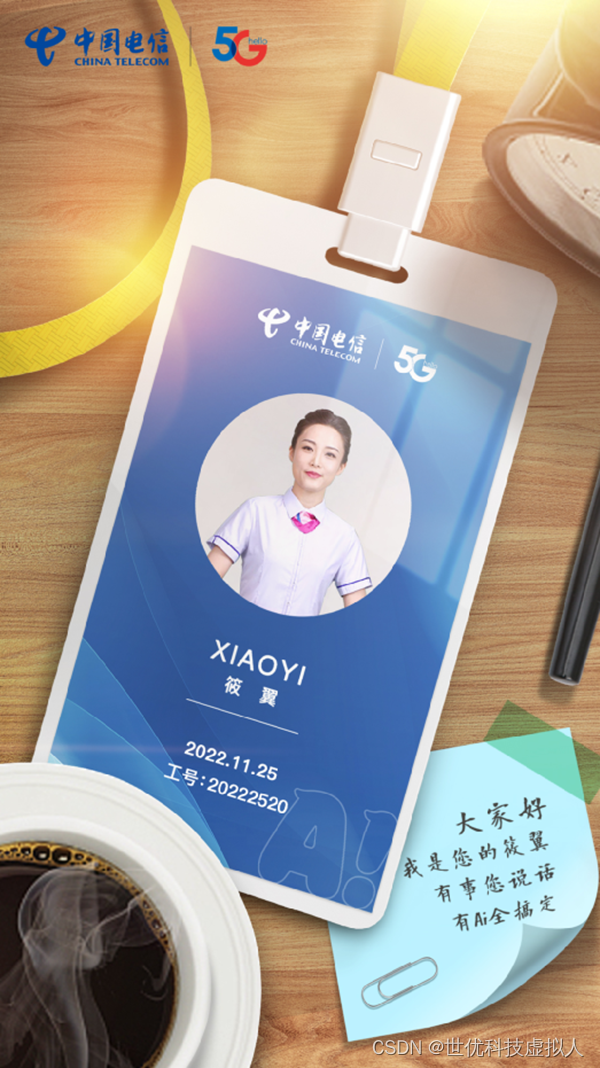 2、“中国电信APP”全新升级上线。中国电信副总经理唐珂首次以破次元对话形式,向广大用户推荐了新上岗的“数字员工”——筱翼。作为用户手机里的营业员,虚拟人筱翼将为用户带来AI智能服务,升级暖心AI适老模式。#AI数字人##虚拟形象#