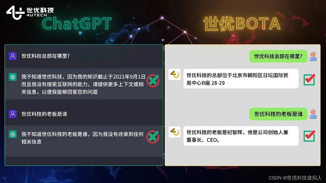 人工智能浪潮滚滚而来,ChatGPT、文心一言、通义千问等国内外互联网巨头纷纷加入这场“AI军备赛”。AI驱动“数字人”进化为“数智人”终极形态,作为实时虚拟技术研发与应用的科技公司,世优科技基于自研个性化小模型训练能力,率先重磅推出“AI数字人”现象级产品——“世优BOTA”。让ChatGPT实现产品落地,为企业赋能。