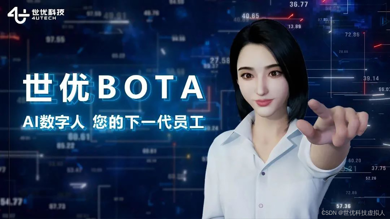 作为虚拟数字人技术服务商,顺应数字人智能化的趋势,世优科技对数字人技术体系进行了重塑,基于自研的快速训练小模型能力,围绕AIGC结合数字人形象,推出了新一代AI数字人产品”世优BOTA“。AI数字人产品“世优BOTA”具有专属定制、私有部署、反馈及时、形象焕新、永不掉线和持续进化六大产品亮点,着重解决了数字人语言理解力和交互力,以及面向用户的场景服务能力等几个方面的问题,大幅提升数字人智慧化服务垂直能力。