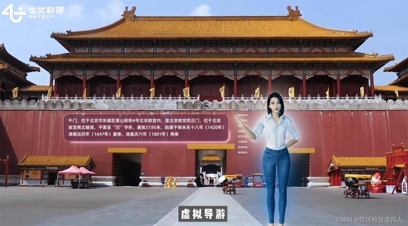 虚拟数字人作为城市代言人和景区导览,借助AI和数字技术提升内容创意、重塑文化传播方式,同时优化服务体验并降低运营成本。在数字文旅发展中,世优科技等企业通过提供数字人技术和解决方案,助力文旅行业转型升级。