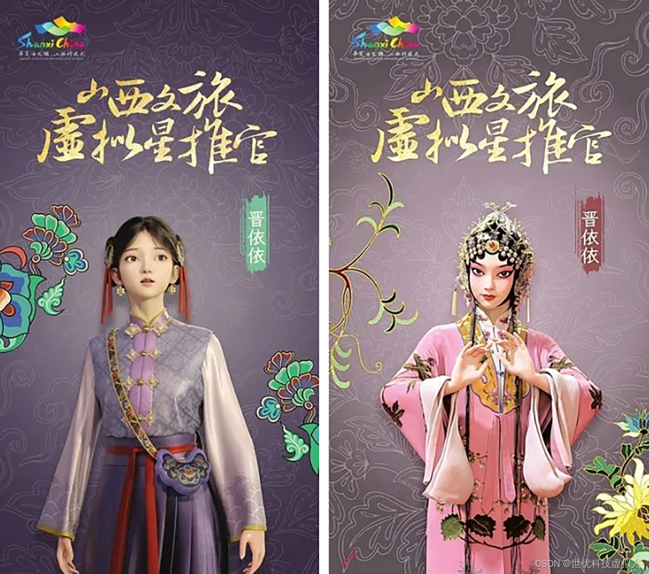 近日,山西文旅的虚拟形象代言人增添一员—“山西女儿”晋依依。作为将理想与现实完美结合的山西文旅虚拟形象代言人,晋依依以“晋”为姓,以“依依”为名,以山西精神之意、依大美山西之景。“山西女儿”晋依依身上的服装、发型、发饰、耳饰等每一样都蕴含着山西文化元素,一经亮相便惊艳了世人。