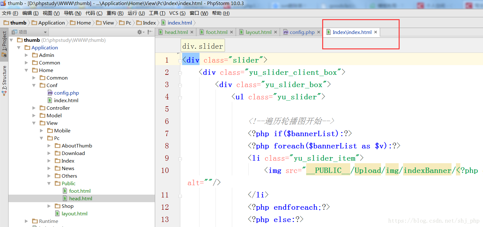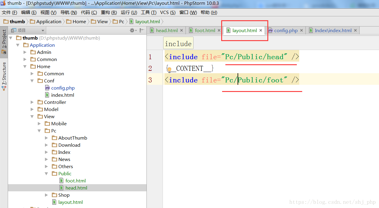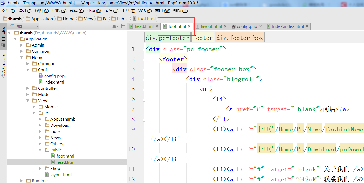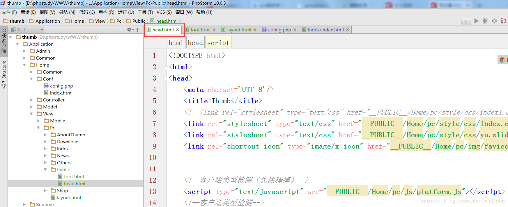 然后,Public/foot.html和Public/head.html分别表示公共的头部和尾部,其中头部: