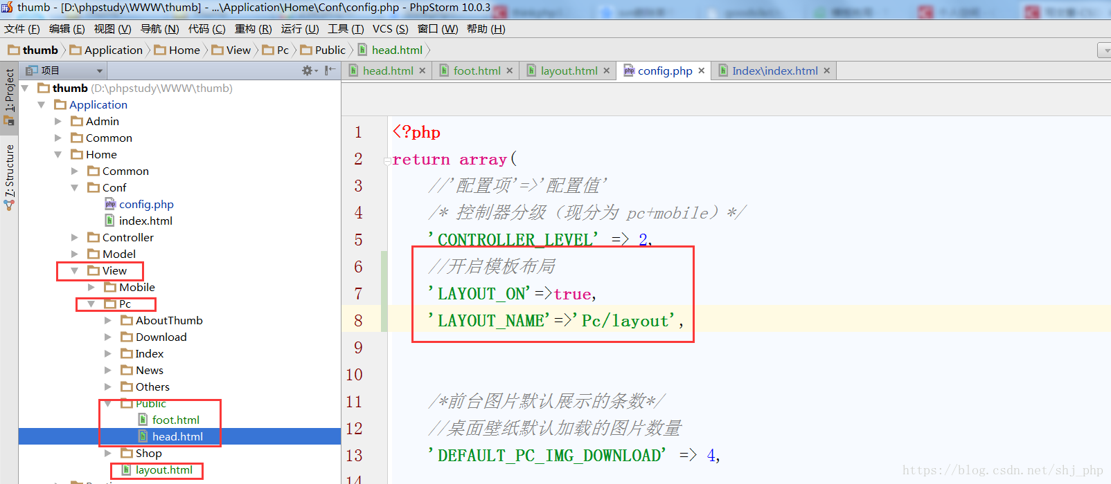 首先:配置文件中配置如下(配置文件中开启模板布局):