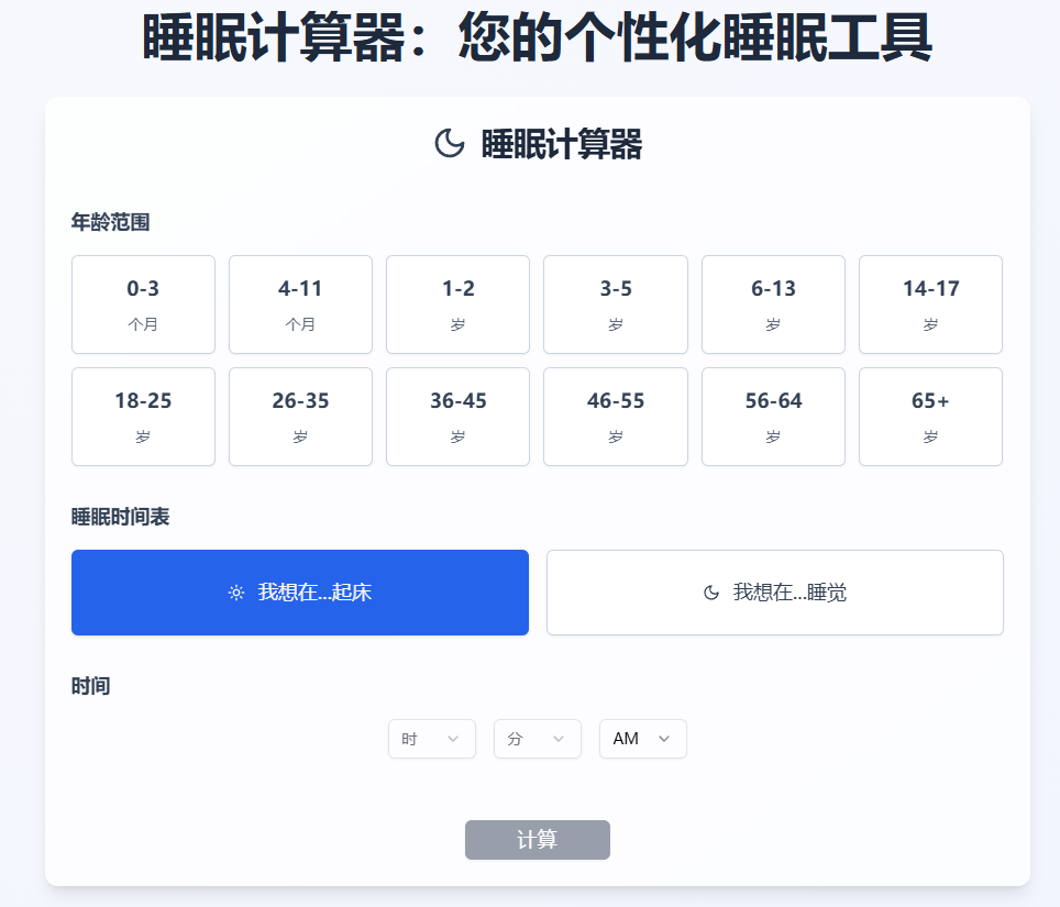 个性化睡眠计算:根据您的年龄和作息偏好,计算最佳就寝或起床时间