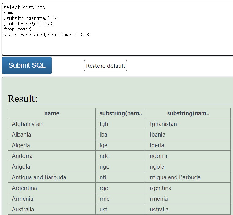 - 例如:substring('New York',3,4)返回w Yo,substring('New York',3)返回w York