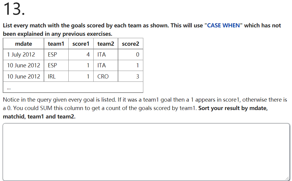 - ,sum(case when ga.team1=go.teamid then 1 else 0 end) score1