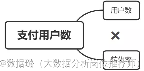 使用多维度拆解分析方法对支付用户数这个指标进行拆解:支付用户数=用户数*转化率