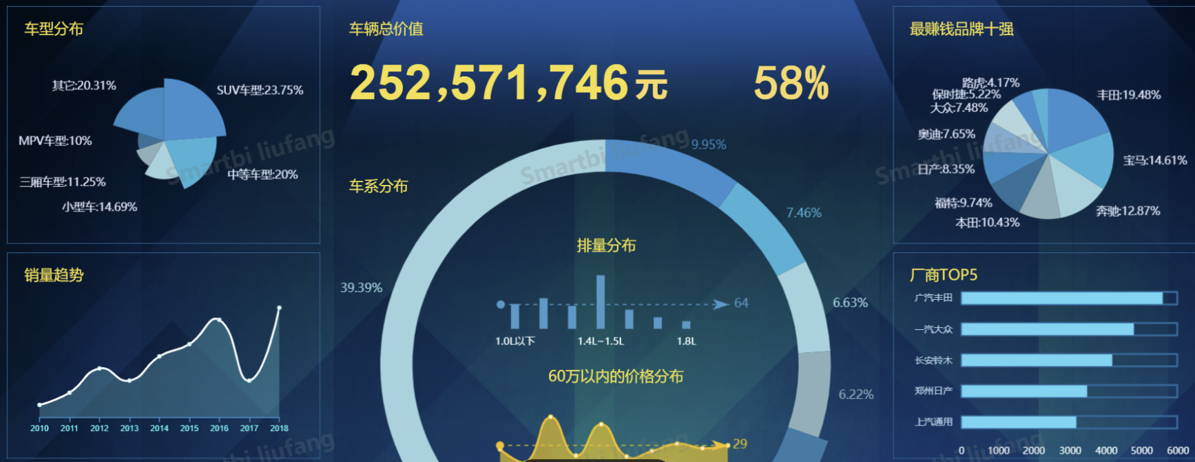(2)仪表盘:仪表盘是一种集成多个关键指标和图表的实时监控工具。它通常以图形化界面呈现,可以根据用户需求自定义显示内容,并提供实时更新和交互功能。仪表盘能够直观地展示企业关键业务指标的趋势和状态,使用户能够及时发现问题并采取相应措施。