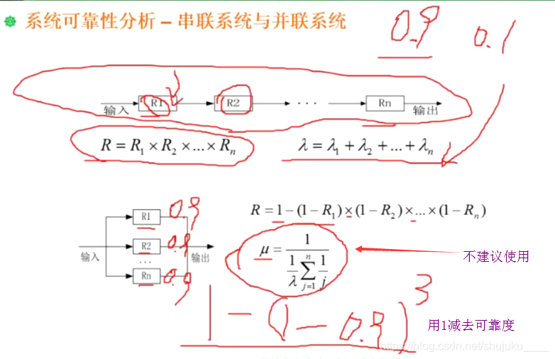 每个系统的可靠度0.9(90%) 不可靠(失效率)0.1