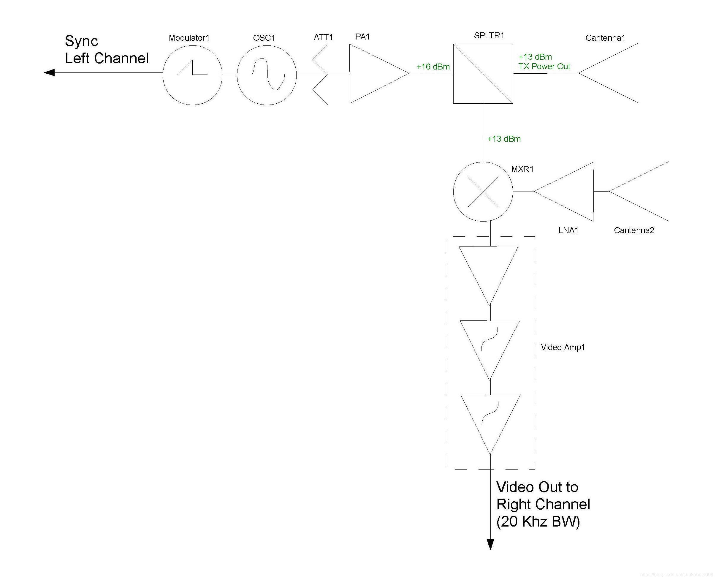 1.硬件雷达用锯齿波信号源(Modulator1)和压控振荡器(OSC1)实现了chirp信号,而gnuradio流图里没有用chirp信号,而是用了一个固定频率的余弦波加到了limesdr的LO上,硬件雷达的衰减器ATT1和功放PA1都是在limesdr内部的发射通道里实现的。