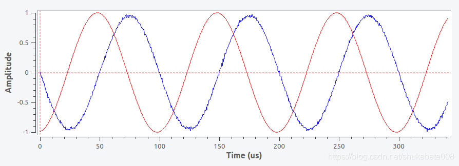 红线是余弦波信号源的信号,比较完美,蓝色是LimeSDR接收机收到的经过物体反射的信号,跟原来发出去的余弦波信号时比较像的,但是看得出有一些干扰。