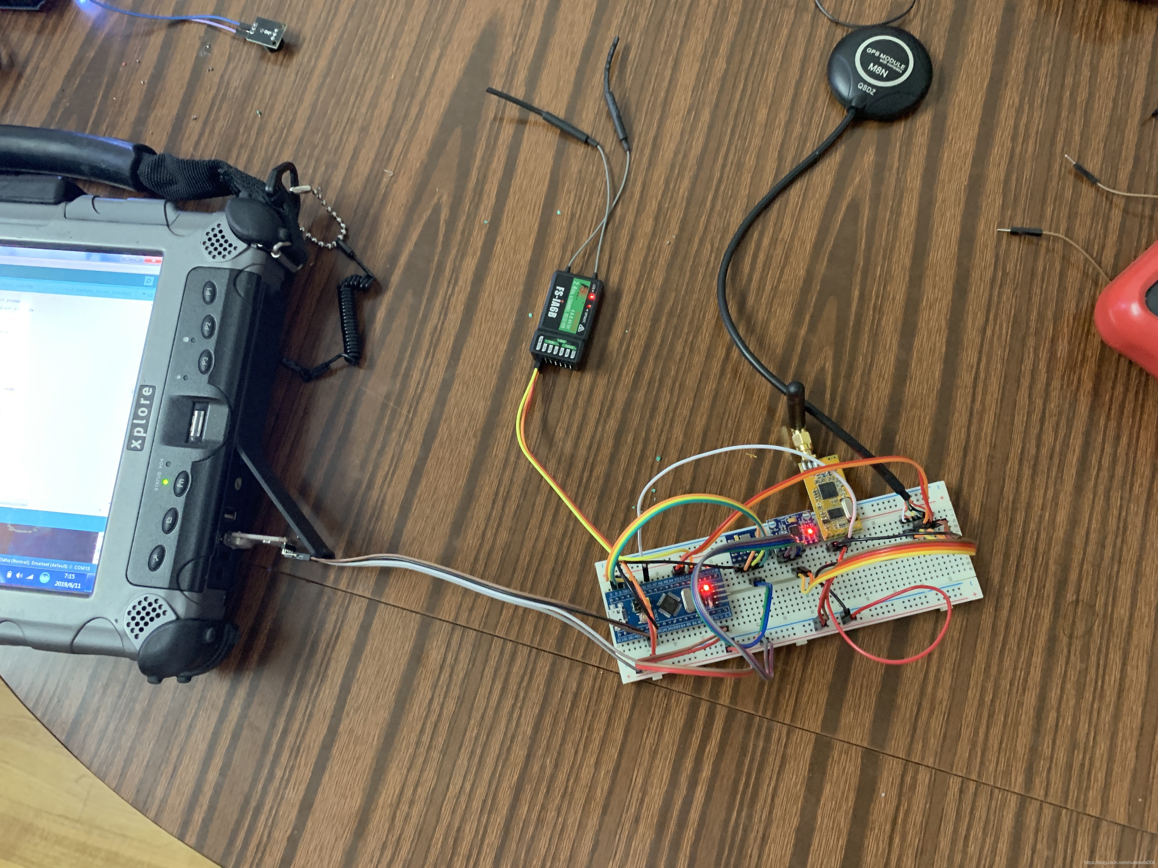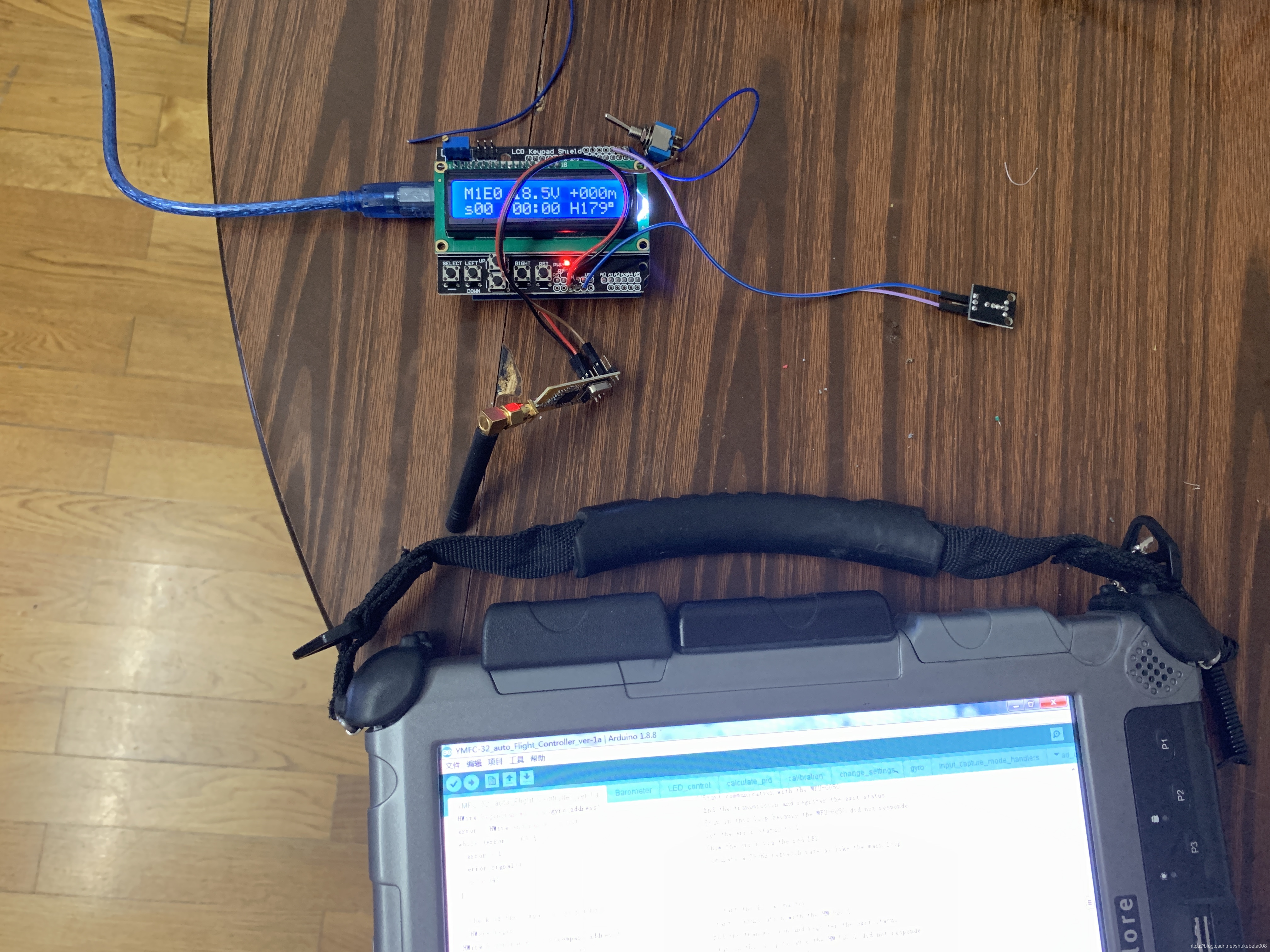 然后再刷了飞控,接上数传发射机。另外还用Arduino uno做了数传接收机。
