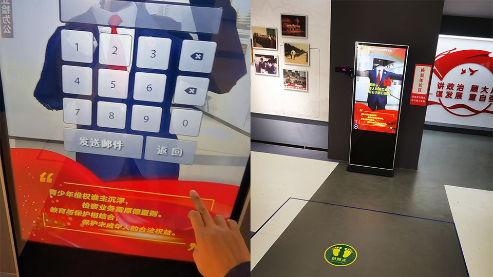 在不同的场景中,可以设定不同的体验环节和不同的换装效果,服装可以定制为:检察官、警察、消防员、医生、小博士等职业装,青少年体验者在镜子里,即可秒变自己理想中的职业人士,让青少年们对未来的人生充满憧憬。