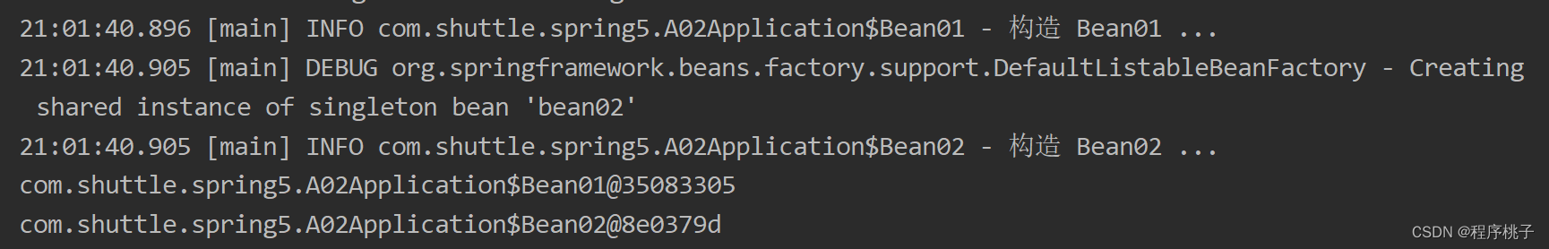 <bean id="bean01" class="com.shuttle.spring5.A02Application.Bean01">
