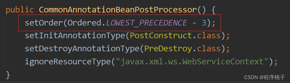 前者数值小于后者,order数值越小优先级越高,故CommonAnnotationBeanPostProcessor后处理器优先级高于AutowiredAnnotationBeanPostProcessor。