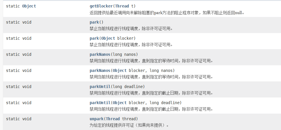 LockSuppot 定义了一组以park开头的方法用来阻塞当前线程,以及unpark(Thread) 方法用来唤醒一个被阻塞的线程。