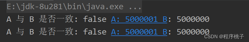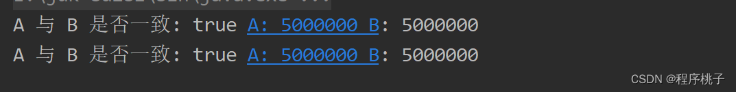 System.out.println("A 与 B 是否一致: " + moneyB.equals(exchangeA) + " A: " + exchangeA + " B: " + moneyB);