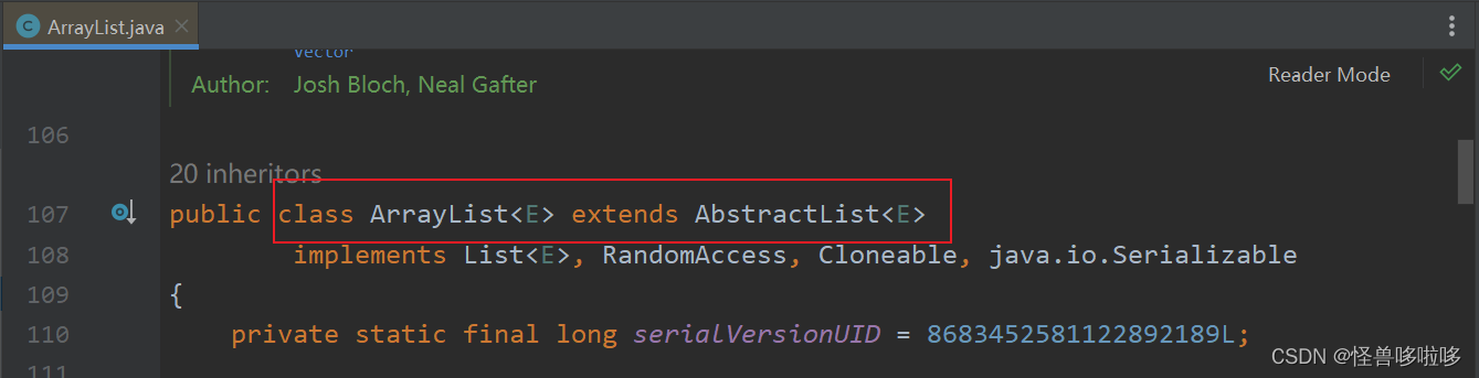 继承指的是一个类(子类、子接口)继承另外的一个类(父类、父接口)的功能、并可以为自己增加新功能的能力。在 Java 中继承关系通过关键字 extends 明确标识。就像Java ArrayList 继承了 AbstractList 并拓展了属于自己的功能。