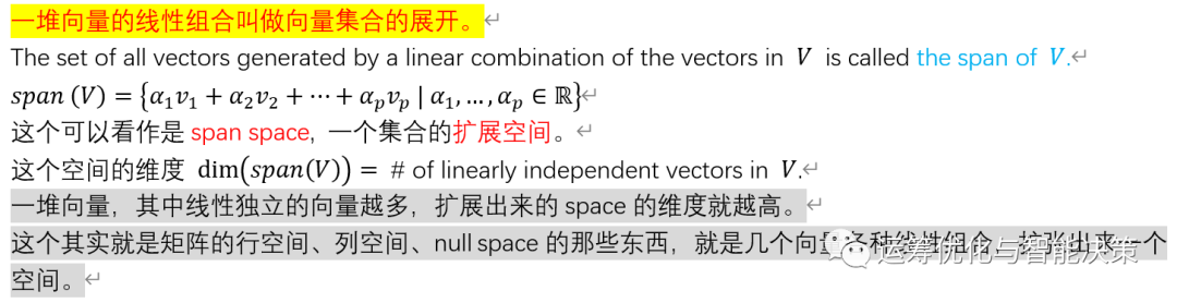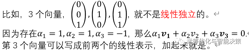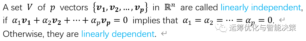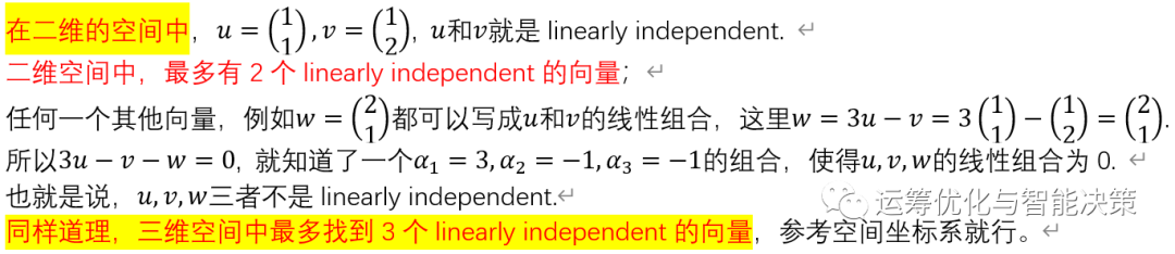 前面是两个向量的关系,最重要的就是正交,接下来是一堆向量的关系,一堆向量可以看作是一个集合。很多向量的时候,我们关注的是这堆向量是否是线性独立 linearly independent.