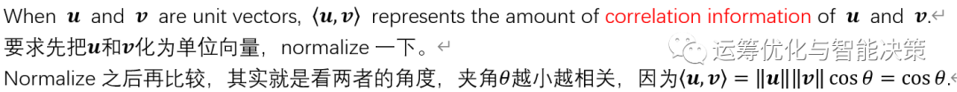 再严谨点,其实应该是先把两个向量normalize一下,再去比较