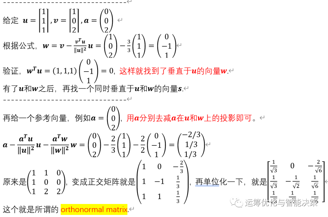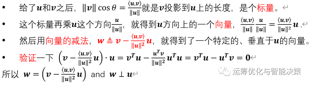 简单来讲,就是减去在上的投影,就得到了一个垂直于的向量。