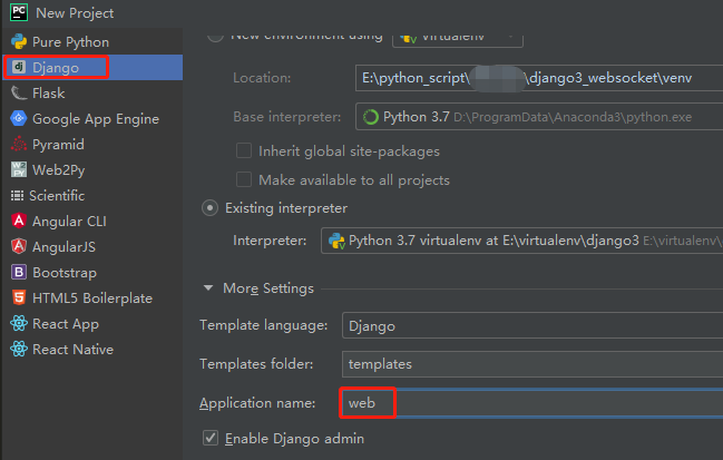 注意:Django 3.0不支持dwebsocket模块,启动时,会报错: