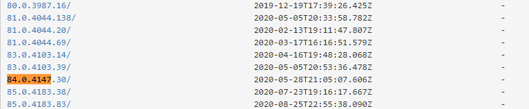 找到 84.0.4147,后面的小版本号虽然和我的浏览器有些差异,可以忽略。只要保证大版本是一样即可。