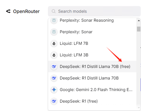输入模型名称:deepseek/deepseek-r1-distill-llama-70b:free