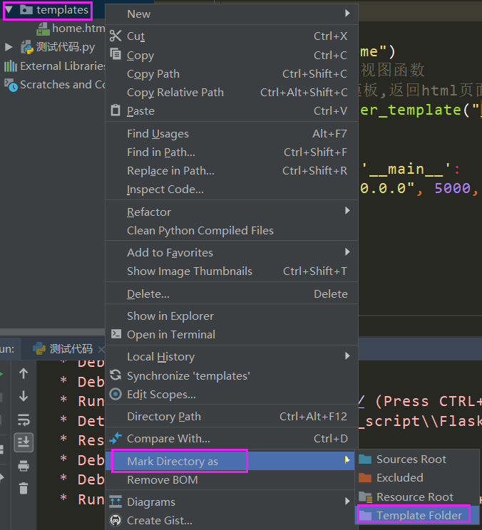 右键templates文件夹-->Mark Directory as-->Template Folder