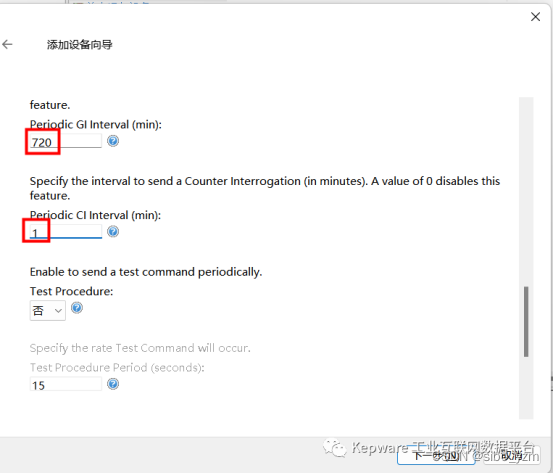 设置总召和计数器召唤的触发周期时间,一般遥脉信号默认把计数器召唤时间改成1分钟即可。