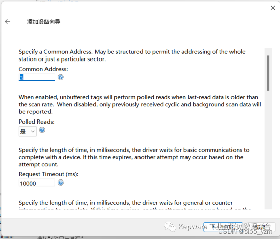 修改设备名称“Name”,修改为需要的名称,这里我们改为“设备1”,设置Common Address。