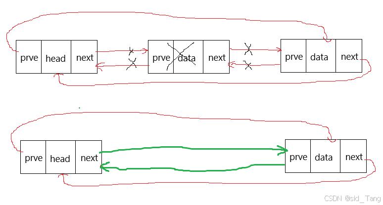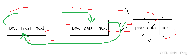 phead->prve = tail->prve; //哨兵位的prve指针指向尾节点的前一个节点