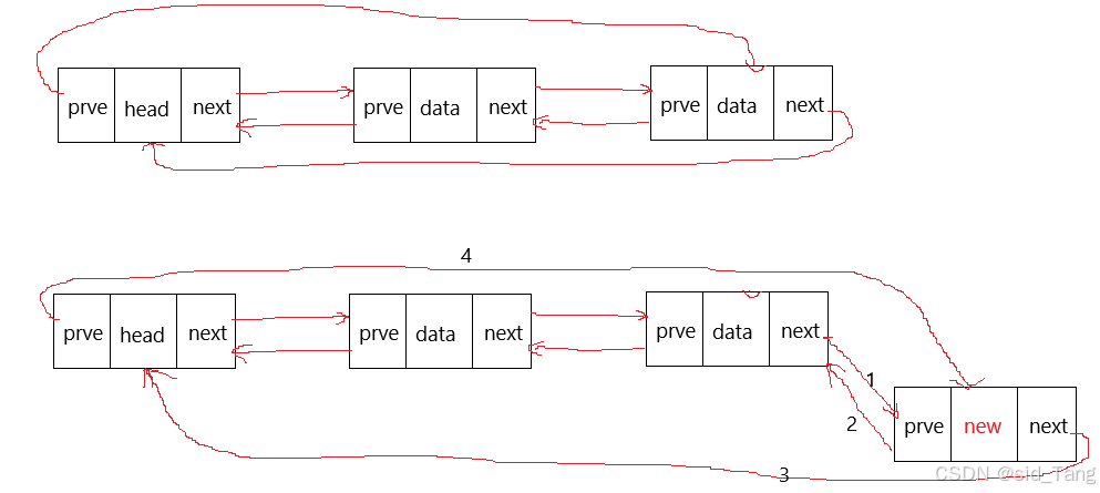 newnode->prve = tail; //新节点的prve指向最后一个节点