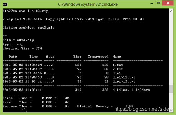 命令:7za.exe l out3.zip