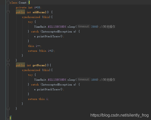 2.静态方法中,synchronized会占用类锁。这个就不加demo了。