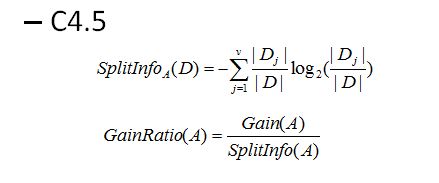 1) 用信息增益率来选择属性,克服了用信息增益选择属性时偏向选择取值多的属性的不足,公式为GainRatio(A);