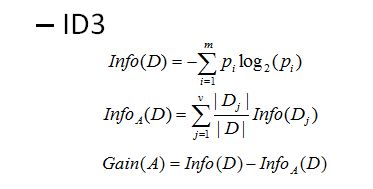其中:Pi为子集合中不同性(而二元分类即正样例和负样例)的样例的比例;j是属性A中的索引,D是集合样本,Dj是D中属性A上值等于j的样本集合。