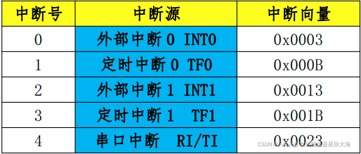- 在 MCS-51 中,有 5 个中断源,按照优先级高低排列如下