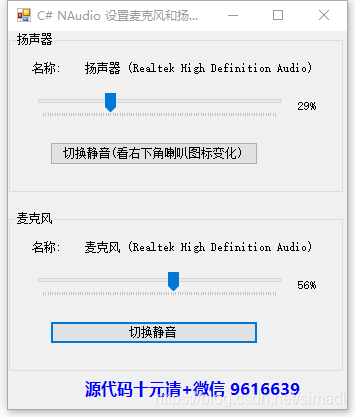 C# 调用NAudio控件 设置获取系统扬声器和麦克风的音量的演示程序,带视频演示。有需要源代码的请在演示程序中获取联系方式。