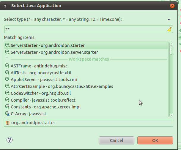 右击XmmpServer项目-->run as--->java application然后选择org.android.pn.starter运行
