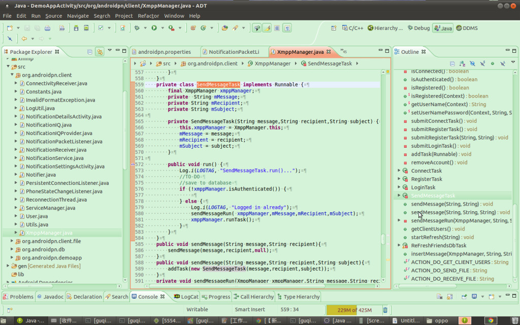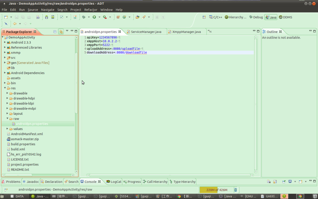 上述XmmpServer,XmmpConsole需要运行在win7笔记本上,DemoAppActivity运行在android手机上