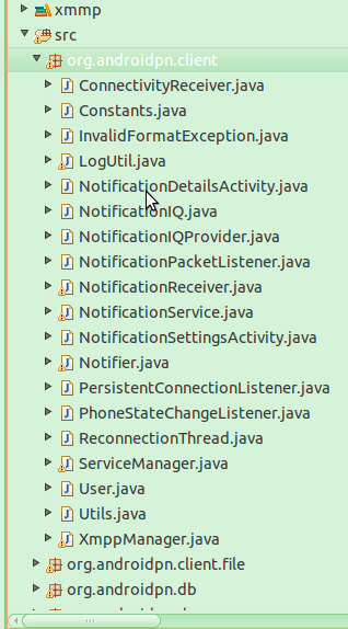 需要下载androidpn-client-0.5.zip,XmmpServer.part1.rar,XmmpServer.part2.rar,XmmpServer.part3.rar