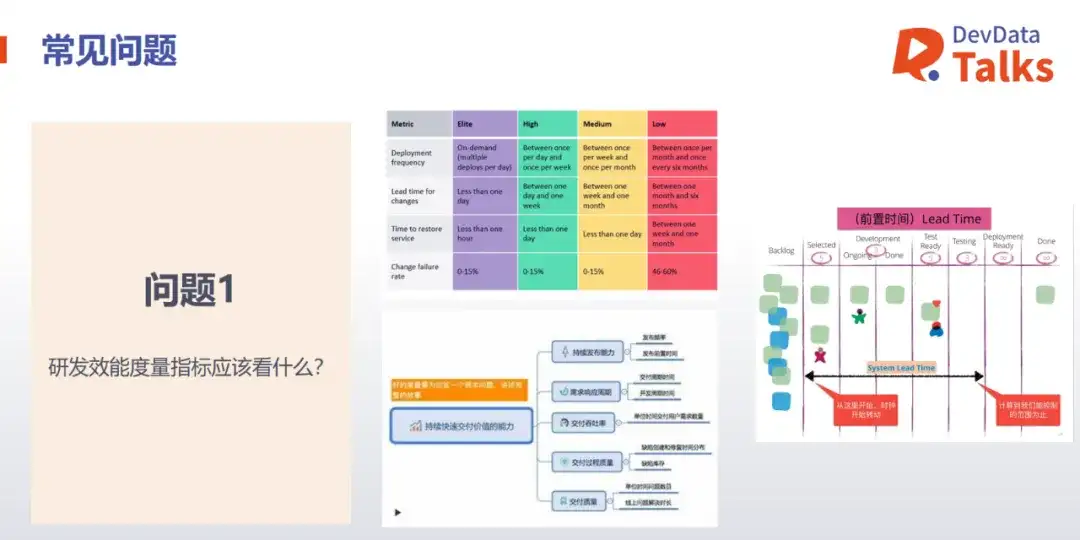 在构建研发效能体系的第二阶段,核心是确保数据质量,即数据需满足标准化、真实性及易用性要求。这一过程直接促进研发体系的成熟。首先,需确保所有指标在高标准数据基础上运行,之后才能探讨如何提升具体指标,如前置时间。缩短前置时间的策略包括细化需求、缩短迭代周期,如由四周迭代缩短至两周,乃至一周两次,以加快部署频率,随之需跟进自动化测试和持续集成等流程优化,确保快速迭代与质量稳定。