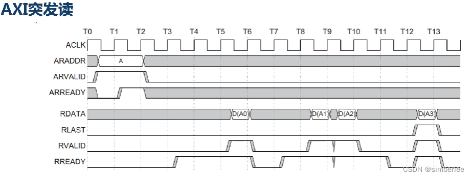 读数据通道由从机发送给主机,包含读数据和读响应的信息,读响应的信号用于表示传输是否完成
