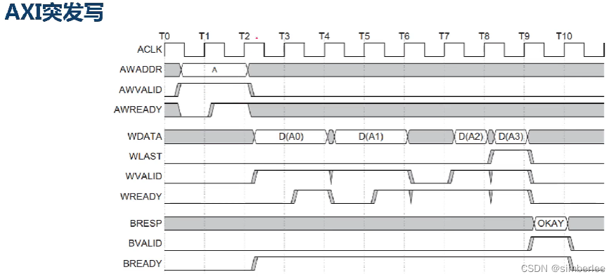 读数据通道和写数据通道都包含一个LAST信号,用于表示传输的最后一个数据
