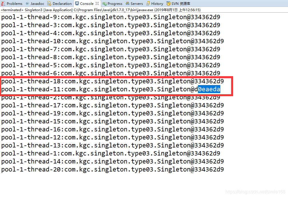 System.out.println(Thread.currentThread().getName() + ":" + Singleton.getInstance());