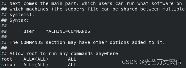 #找到root ALL=(ALL) ALL, 在下面添加一行, xxx是用户名称