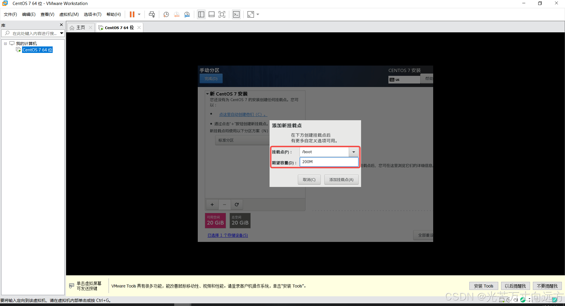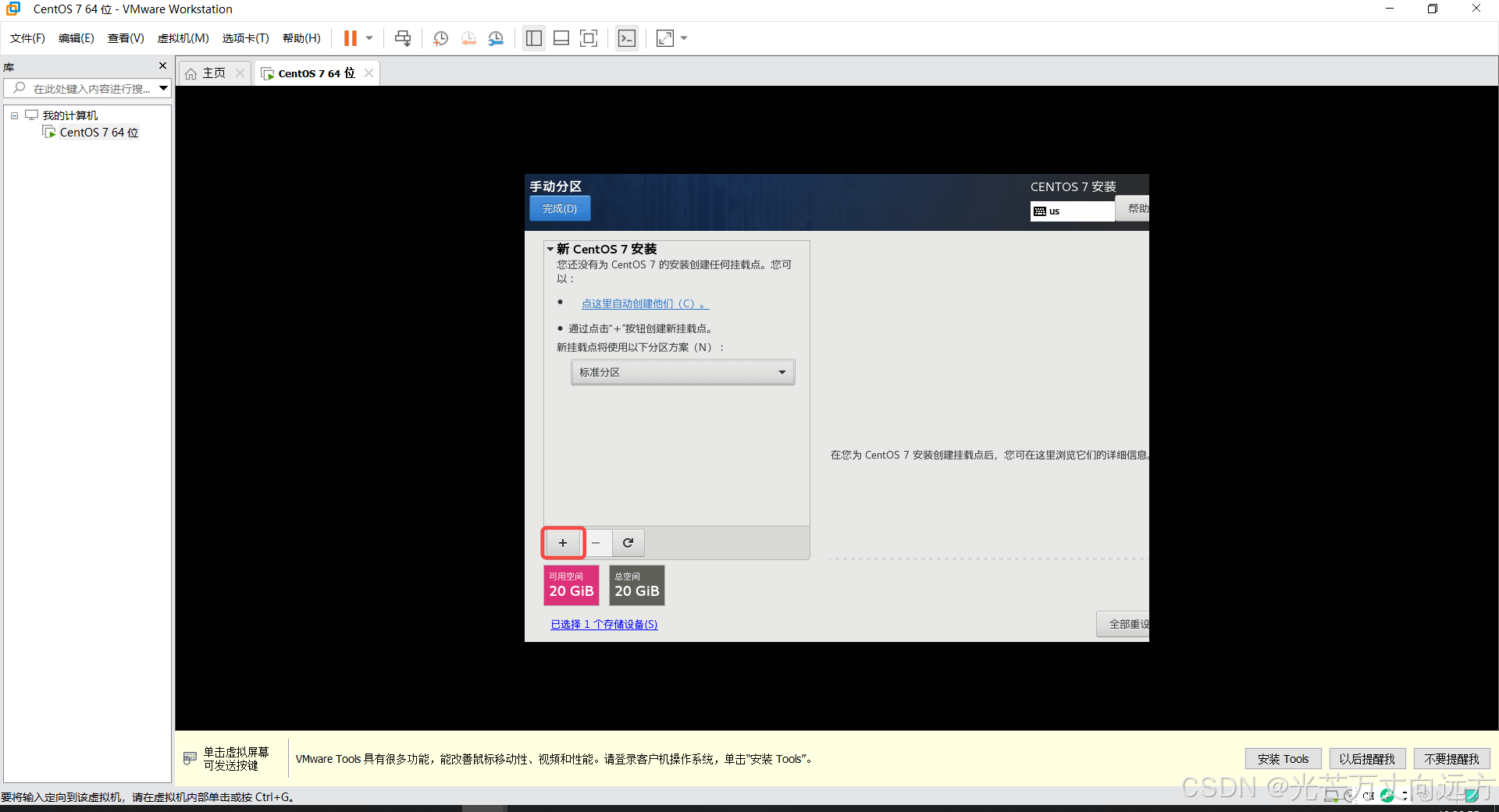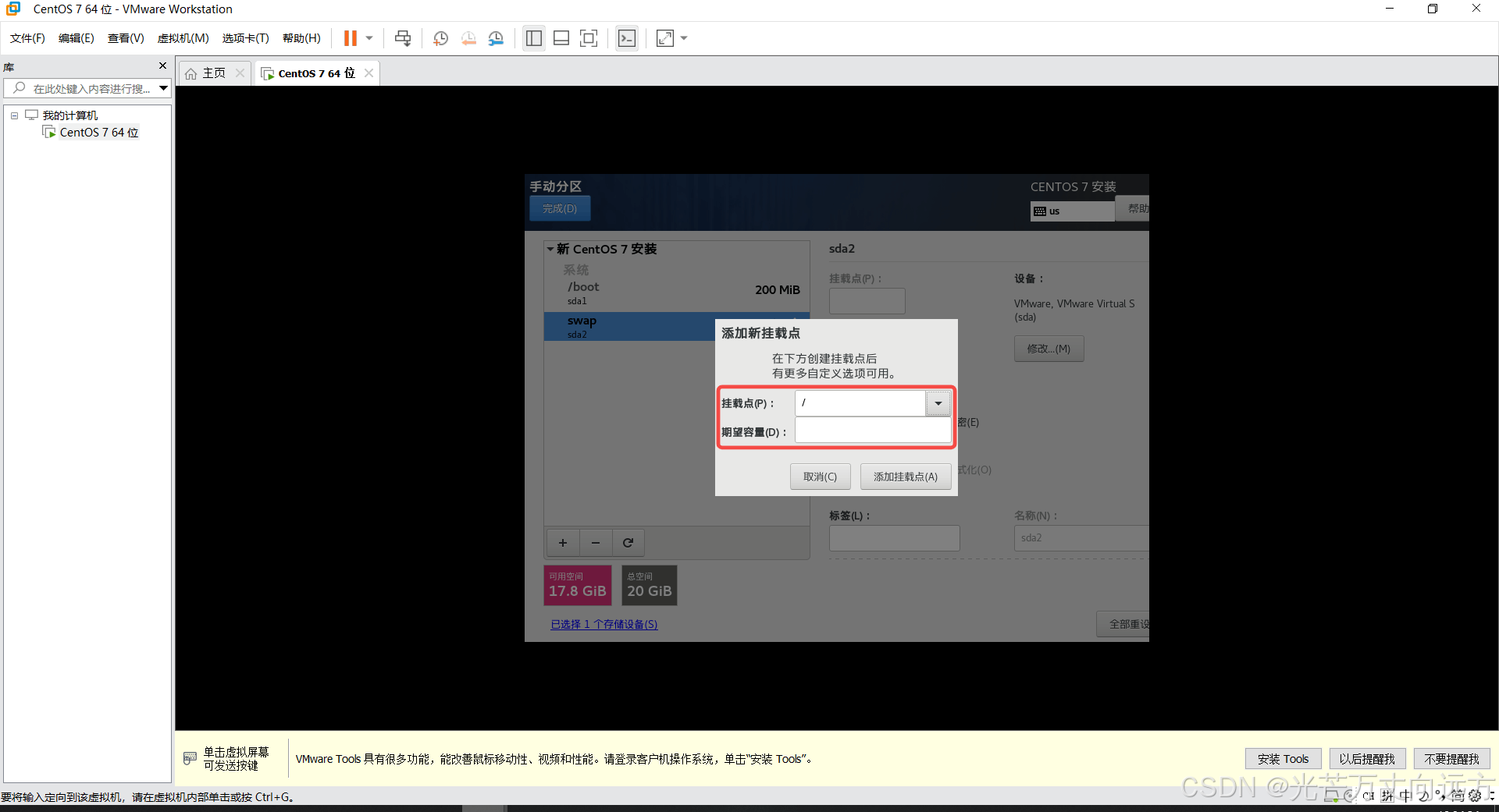 点+号继续添加,选择/,容量留空,这样我们把剩余空间全部分配给了/