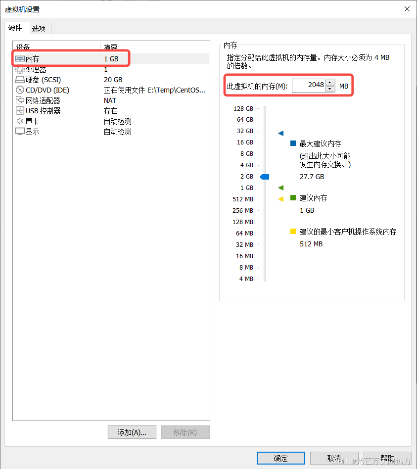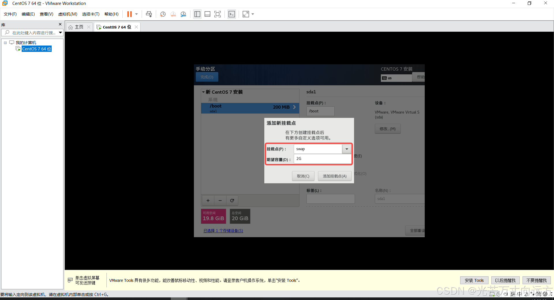 点+号继续添加,下拉箭头选择swap,容量填2G