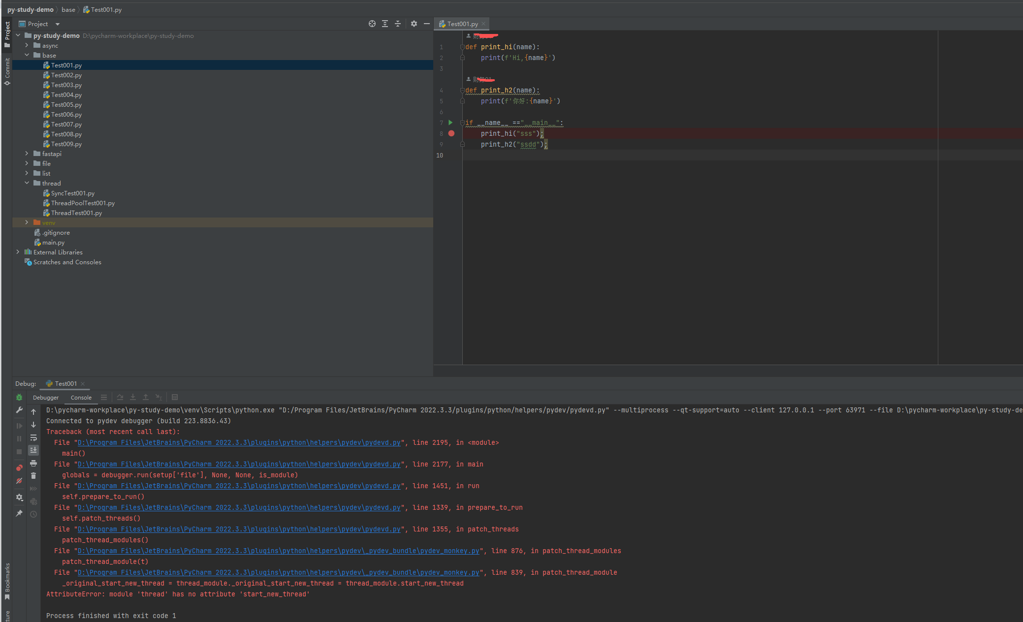 2022.3.3\plugins\python\helpers\pydev\pydevd.py", line 2177, in main globals = debugger.run(setup['file'], None, None, is_module) File "D:\Program Files\JetBrains\PyCharm 2022.3.3\plugins\python\helpers\pydev\pydevd.py", line 1451, in run self.prepare_to_run() File "D:\Program Files\JetBrains\PyCharm 2022.3.3\plugins\python\helpers\pydev\pydevd.py", line 1339, in prepare_to_run self.patch_threads() File "D:\Program Files\JetBrains\PyCharm 2022.3.3\plugins\python\helpers\pydev\pydevd.py", line 1355, in patch_threads patch_thread_modules() File "D:\Program Files\JetBrains\PyCharm 2022.3.3\plugins\python\helpers\pydev\_pydev_bundle\pydev_monkey.py", line 876, in patch_thread_modules patch_thread_module(t) File "D:\Program Files\JetBrains\PyCharm 2022.3.3\plugins\python\helpers\pydev\_pydev_bundle\pydev_monkey.py", line 839, in patch_thread_module _original_start_new_thread = thread_module._original_start_new_thread = thread_module.start_new_thread AttributeError: module 'thread' has no attribute 'start_new_thread'
